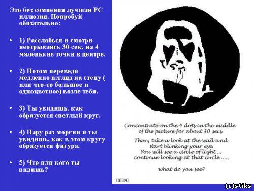 | Эта картинка использует особенности глаза...точнее ее фотоспособность...А так картинка - зачет!!! но мне больше нравятся 3D картинки...